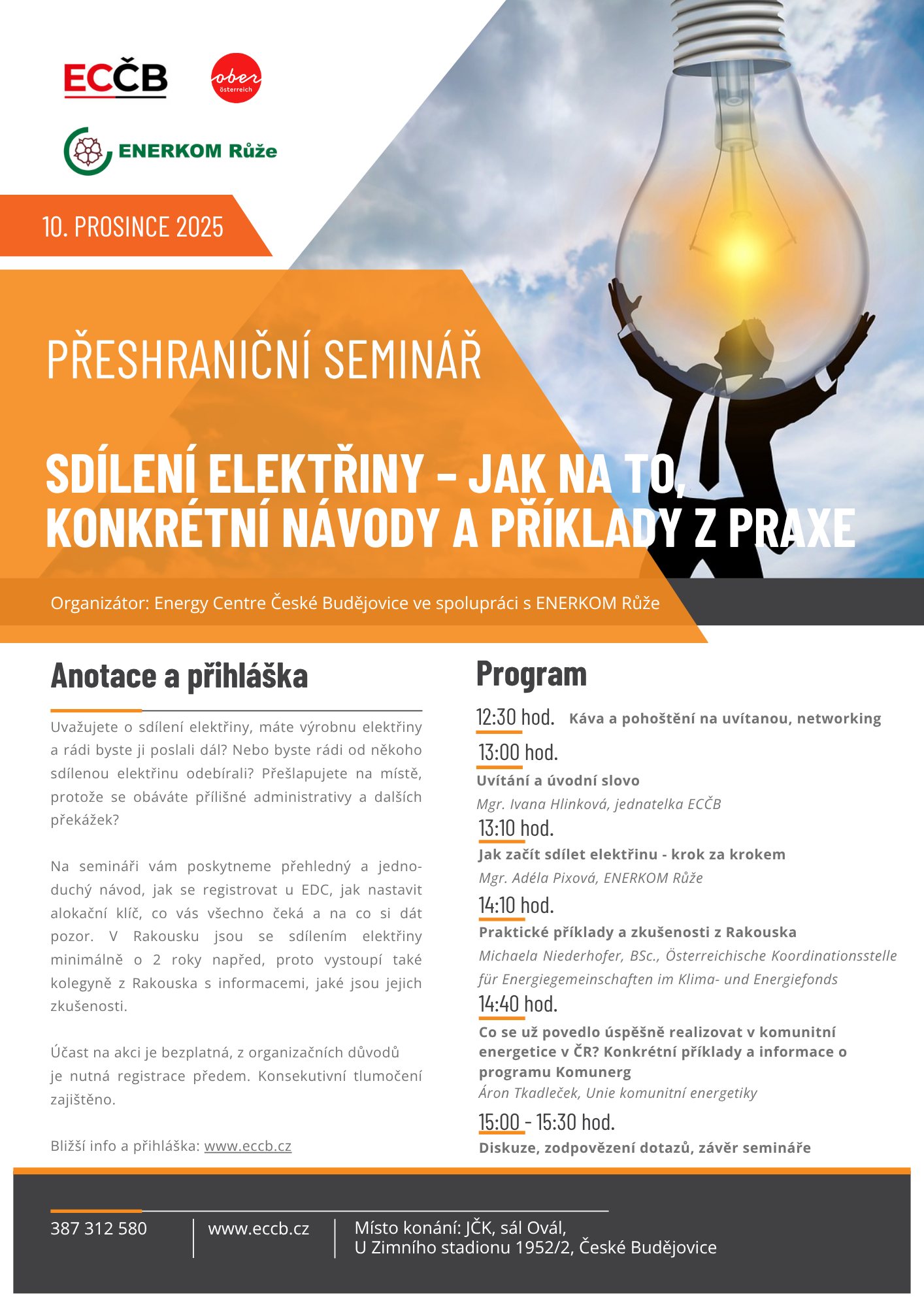 Místo konání: Krajský úřad Jihočeského kraje, sál Ovál, U Zimního stadionu 1952/2, České Budějovice
