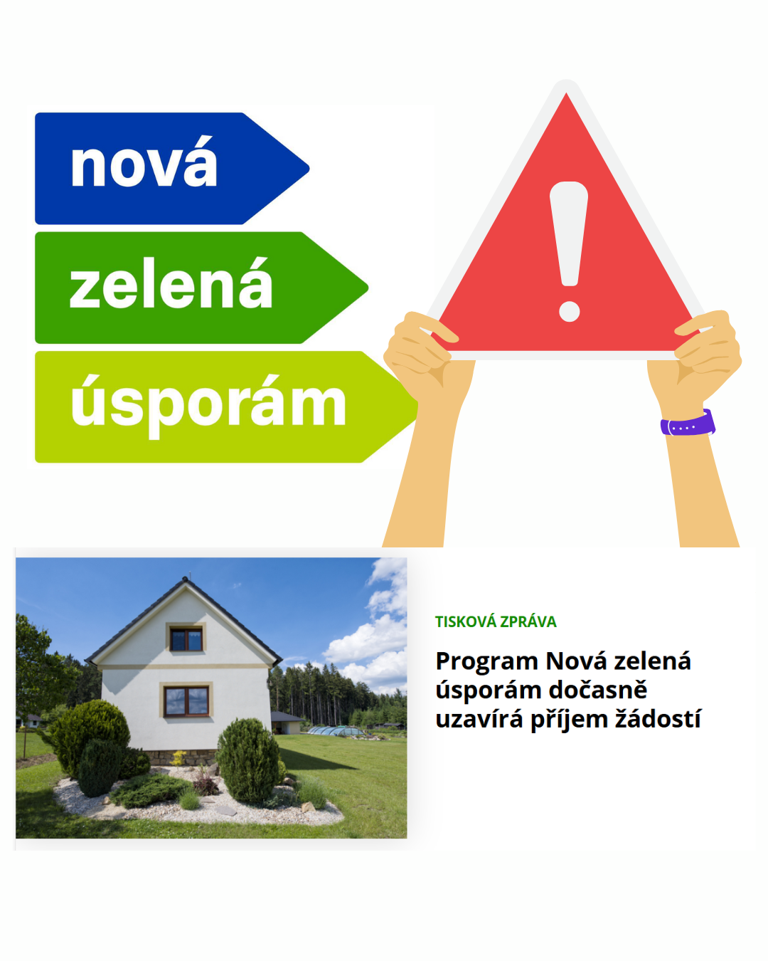 Program Nová zelená úsporám dočasně uzavírá příjem žádostí